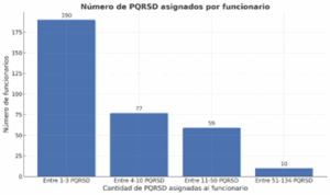 Si la distribución de solicitudes hubiera sido equitativa, a cada funcionario le habrían correspondido en promedio 8,5 PQRSD en el año. Sin embargo, los datos evidencian una sobrecarga significativa para algunos funcionarios frente al número de PQRSD asignadas.
