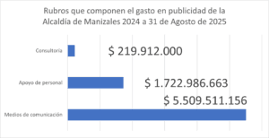 En el caso de la Alcaldía de Manizales, el gasto en publicidad de 2024 y 2025 ($7.452.409.819) también es superior a lo aprobado para varios sectores del Plan de Desarrollo Municipal en 2025, Este monto excede, por ejemplo, los presupuestos de Agricultura y Desarrollo Rural ($4.121 millones), Tecnologías de la Información y las Comunicaciones ($3.477 millones) y Ambiente y Desarrollo Sostenible ($6.913 millones) (datos extraídos de la ponencia de segundo debate del proyecto de acuerdo 030 de octubre de 2024).