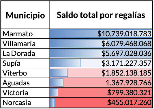 La Corcivicaldas indagó con la Secretaría de Planeación de la Gobernación de Caldas, los saldos disponibles por regalías que tienen los municipios de los proyectos investigados, al 27 de septiembre del presente año.