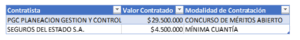 - EDSA solo firmó 2 contratos durante el periodo de estudio, de los cuales uno ya había sido contratista durante la pasada administración de Luis Carlos Velásquez (PGC Planeación Gestión y Control S.A.S) y una es nueva con la entidad (Seguros del Estado S.A.).
