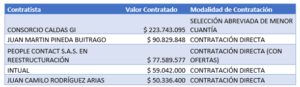 - Los 5 mayores contratistas de Dirección Territorial de Salud de Caldas ya habían contratado previamente con la anterior administración.