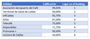 A continuación, se presenta la calificación promedio acumulada de cada entidad y se le da un lugar en el Ranking de acuerdo con esa calificación: