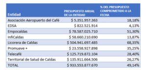 3.4 PORCENTAJE DEL PRESUPUESTO DE LA ENTIDAD COMPROMETIDO EN LOS CONTRATOS REGISTRADOS EN EL SECOP A LA FECHA DE CORTE DE LA INVESTIGACIÓN.