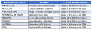 - Representante Legal: Diego Angelillis Quiceno, desde el 1 de enero de 2024.