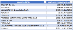 Presupuesto acumulado que “vigilan” las firmas de Revisoría Fiscal